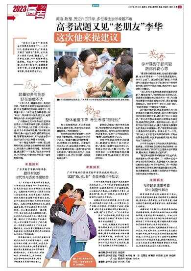 “李华又上线了”“考完再也不用帮李华写信了”……6月8日,在英语考试中,广东考生又遇见“老朋友”李华,这次他为口语练习分组“提建议”。不少考生反映,今年英语考得比较满意。而在同一天开考的物理、历史两个科目中,物理难度有所下降,历史题量较多题型有创新,好在难度也不大。