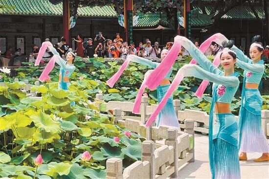新快报讯 记者谢源源 毕志毅 通讯员冯晓敏报道 6月10日,广州市番禺区宝墨园第三届汉风荷韵旅游文化节盛大开幕,宝墨园以“曲水咏荷、花海寻芳、寻味荷香、廉风荷韵”四大园林赏荷主题分会场,通过荷文化与汉服礼仪、诗词歌赋、廉政文化、岭南美食等领域跨界融合,打造出一场内容丰富、业态多样、与时俱进的赏荷文化盛宴。据介绍,凌波仙子独竹漂表演将于6月11日、17日、18日和端午节3天假期上、下午各一场,在宝墨园荔景湖精彩上演。