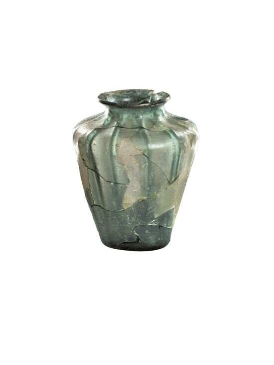 ■玻璃瓶。2003年南汉康陵出土,高12.2,口径5.3-5.5,底径4.7-5.0,壁厚0.1厘米。