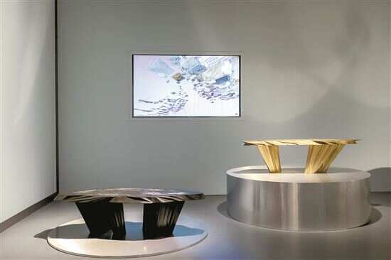 比如李世奇的作品《人工自然家具系列》,他用人工智能生成的图形做成一张桌子。从视觉造型完毕到完全做成实物之前,他找到河北一家能够借助计算机辅助制造完成作品的工厂,这里涉及高新科技工具的应用,工厂人员的沟通和理解以及实施过程的把控,实际上,这也是当代艺术和设计中应用比较多的工艺流程。