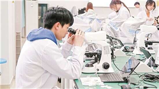 ■广东科贸职业技术学院学生在动物科技学院显微互动实训室上课。