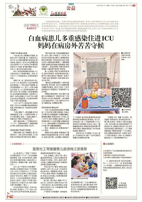 星星点点,见证人间大爱。六年前抱憾离世的杨素慧,自从4岁多的儿子剑锋丢失后,她用人生中最美好的26年奔波寻子,至死未能圆满“再听他叫一声‘妈妈’”的愿望;罹患重型地贫的少年冯宇恒,不仅要忍受定期输血、排铁的痛苦,还要接受心力交瘁的父母终因经济压力劳燕分飞的现实;热爱弹唱的河源大学生小科,刚找到心仪的工作,就检出急性白血病……痛点出现、困境群体呼唤之时,新快报“天天公益”始终在线。我们的一线报道,将其带出的议题推入公众视野,为他们搭建传播平台,也为他们链接各方资源。这也是2011年,新快报率先全国媒体首创“天天公益”栏目,为求助者急其危,解其难的初心体现。
