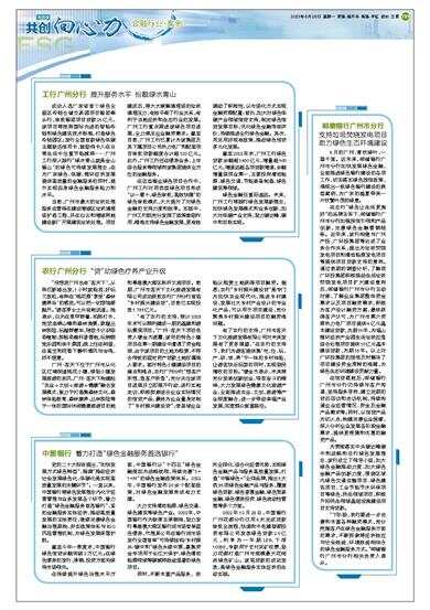 在这些银企绿色项目合作中,广州工行对同类型绿色项目形成“以一看十,绿色审批,高效快捷”的绿色审批模式,大大提升了对绿色金融的支持力度和效率。实践中,广州工行既充分发挥了政策激励作用,精准支持绿色金融发展,更有效调动了积极性,以市场化方式实现金融资源配置:首先,加大对绿色低碳产业领域信贷支持,制定绿色信贷发展目标,优化绿色金融考核评价,持续推进全行绿色金融。其次,用足用好现有政策,推动绿色信贷多元化发展。