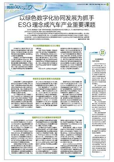中国汽车产业正处在快速发展阶段,绿色数字化建设和协同发展是车企高质量发展的内在需求。在主营业务之外,车企需要通过不断提升环境、社会、公司治理等方面的表现来满足利益相关方的多元化期待。换言之,在当前阶段,一家车企想获得持续性的成功,需要兼顾所有有利于企业和社会共同可持续发展的要素,也需要制度创新来激活数字化和绿色化协同的潜能。