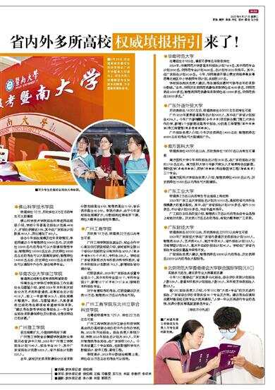 佛山科学技术学院招生科李老师在现场介绍,学校今年普高总招生计划是4438人,扩招比例接近10%,其中在广东招生计划数是3913人,同比增加了300人。