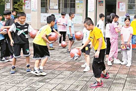 一位同学开心地说:“我超级喜欢上体育课,以前体育老师教我们打篮球,但篮球很少,现在有了这些体育器材,以后体育课就更加:、丰富多彩,我们每个人都可以同时练习了。”
