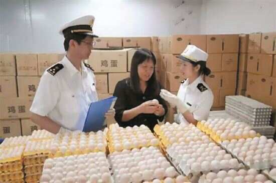 拱北海关所属斗门海关关员对供港鲜鸡蛋实施属地监管。