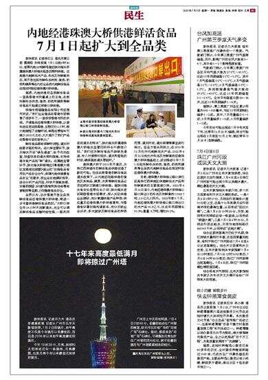 港珠澳大桥于2018年开通后,为珠江西岸城市的鲜活食品供港创造了新的可能。但在此前香港的鲜活食品通关政策下,从内地经陆路供港的蛋类及其制品、蔬菜、水果等鲜活食品必须经深圳文锦渡口岸供港。据拱北海关食安处宦萍处长介绍,拱北海关密切跟踪香港市场需求,深入关区供港企业调研,充分掌握供港产品种类、供应量及经港珠澳大桥供港意向,与香港食环署加强沟通联系,充分反映企业诉求,多次就涉及鲜活食品的种类范围、通关时间、通关保障等事宜进行商讨。经各方面共同努力,在2019年12月允许内地鲜活水产品、2022年6月22日起允许冷冻及冰鲜禽肉经港珠澳大桥供港基础上,成功推动今年7月1日起冰鲜冷冻肉类、蛋类、奶类和蔬果等全品类内地鲜活食品在指定时段经港珠澳大桥供港。