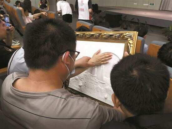 音乐会不仅面向普通观众,也面向视障观众。音乐会伊始,视障观众在现场工作人员的引导下有序进场,参加了画作先导沙龙。在娓娓道来的讲解声中,大家用双手触摸3D立体画作,利用双手探索威廉·透纳画笔下的《沉船浮标》,借助听觉和触觉开启了另一道通往艺术世界的大门。此外,广东省博物馆还专门制作了盲文节目单,以便大家能更好地感受展览和音乐会。这场别出心裁的导读沙龙,充分显示了粤博的人文关怀,用人文的温度融化艺术体验的界限。