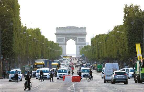 ■7月2日晚间,警察在法国巴黎香榭丽舍大道上封路巡逻。新华社发