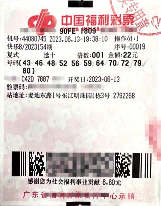 快乐8游戏第2023154期中,惠州惠城区彩民以一张22元自选复式票,中出“选十中十”1注,“选十中九”10注,奖金563万多元。开奖后,中奖者极速来到惠州市福彩中心办理领奖手续。