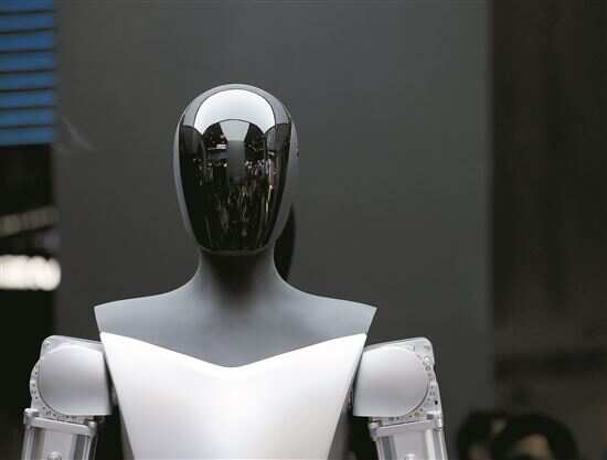 ■在2023世界人工智能大会展会现场展示的特斯拉机器人。新华社发