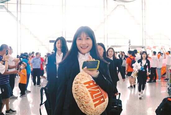 为了给中国女足加油助威,不少本地球迷自发前往机场送行,不仅请求队员和教练签名留影,还主动送上鲜花、泡面、玩偶等礼品。女足姑娘们纷纷表示,只是在广州逗留了一夜,没想到还会有这么多球迷前来送行,非常感动。