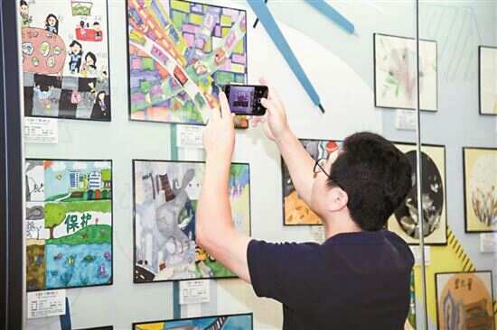 “这些乡村孩子的作品给我带来很大的惊喜,小作者们能够将自己生活的地方、身边的景色,还有一些当地民俗都融入到作品中。”一位观展市民站在展板前,对着色彩斑斓的画作不停拍照,“很多作品不乏创意,每一幅画都充满童真。”