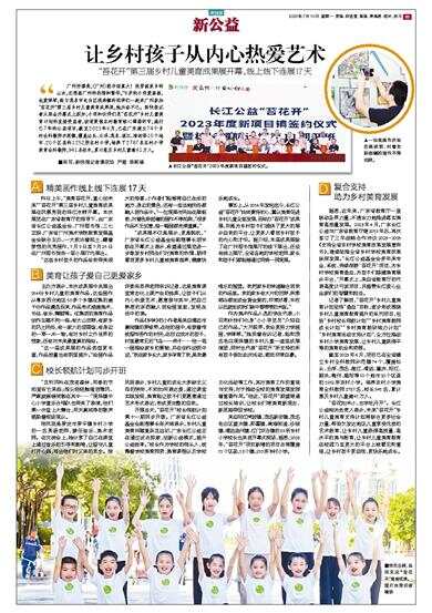 “广州好漂亮,(广州)图书馆真大!我要画家乡的山水,还想画广州的热情和繁华。”8岁的小羽爱画画,也爱弹琴,能与茂名市电白区观珠镇的同学们一起来广州参加“苔花开”第三届乡村儿童美育成果展,她兴奋不已。新快报记者从展会开幕式上获知,小羽和伙伴们是“苔花开”乡村儿童美育计划的直接受益者,该项聚焦农村教育核心薄弱环节,施行已7年的公益项目,截至2023年6月,已在广东建立74个乡村全科教师示范镇,覆盖汕头、云浮、茂名、湛江、清远等10个地市、20个区县的1252所农村小学,培养了2787名农村小学美育全科教师,941名校长,累计惠及乡村儿童逾41万人。