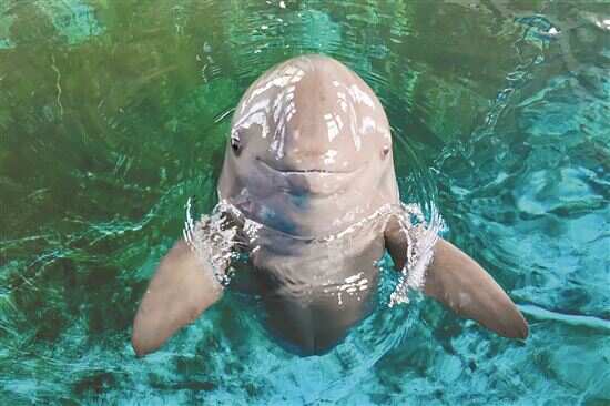 7月5日,世界第一头在全人工环境中成功繁育的长江江豚“淘淘”迎来18岁生日。这是在中科院水生所白鱀豚馆,“淘淘”在水中游动。