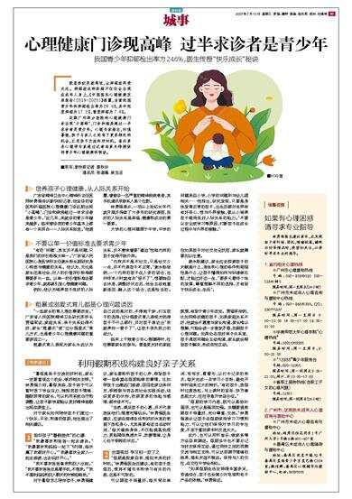 “一些家长的育儿理念需要改变。”广东省人民医院精神卫生研究所所长贾福军说,家庭关系、亲子关系处得不好,家长“粗暴式”或“过分溺爱式”育儿方式,也是青少年心理健康问题的重要诱因之一。