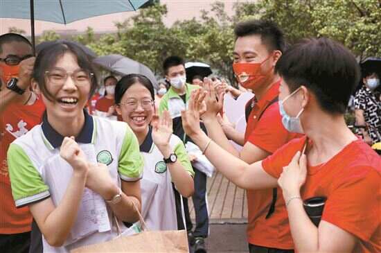 ■2022年中考,华南师范大学附属中学门前的考生和家长。新快报记者 郗慧晶/摄(资料照片)