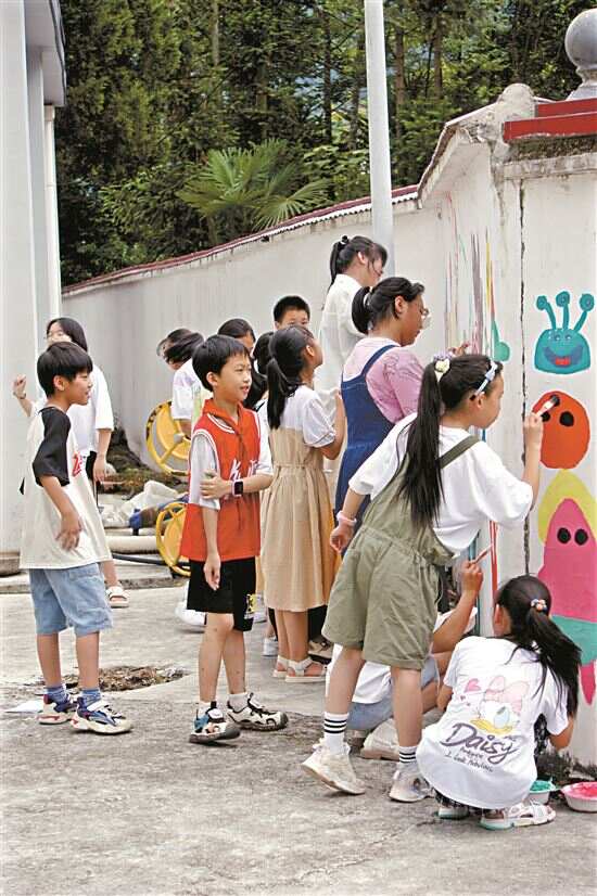 “相比其他山区学校,我们学校的生活条件其实还好,教育局对我们的支持力度很大,也经常有地方捐赠图书和物资。”朱鹏说。但艺术家走进学校,为孩子们带来富有趣味的音乐、陶泥、写作课,带领孩子在教学楼后的空墙绘画,却是学校师生从未有过的难得体验。“这对我们来说是可遇不可求的事情。这些善行,能在孩子心中埋下一颗种子。”朱鹏说。