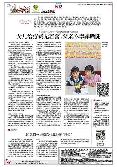去年1月,婷婷在父母的陪同下再次前往广州市妇女儿童观医疗中心求诊。让王学旭动容的是,婷婷在强忍剧痛完成骨髓穿刺的过程中,额头有汗,眼里却没有泪水。“她太懂事了,怕我们难过所以不哭。”
