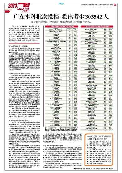 7月19日,广东省本科批次普通类正式投档,共投出普通类考生273025人,其中:普通类(历史)投出74488人,普通类(物理)投出198537人。此外,本科批次艺体类统考共投出考生30517人,其中体育类投出5396人,音乐统考投出4339人,美术统考投出17405人,舞蹈统考投出958人,广播电视编导统考投出934人,书法统考投出403人,播音与主持统考投出1082人。