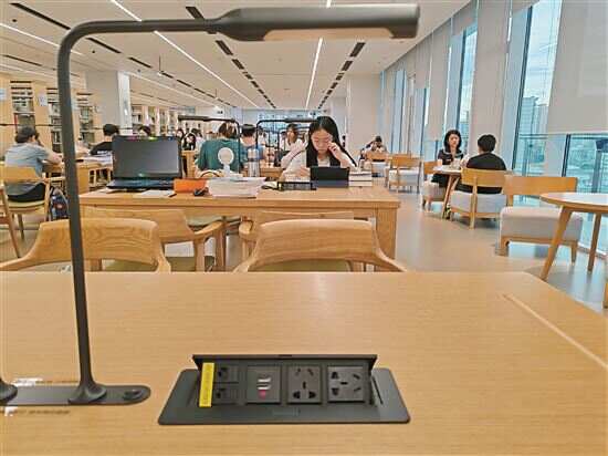 ■花都区图书馆新馆座椅种类多样,还配备充电插口和台灯,舒适度较高。