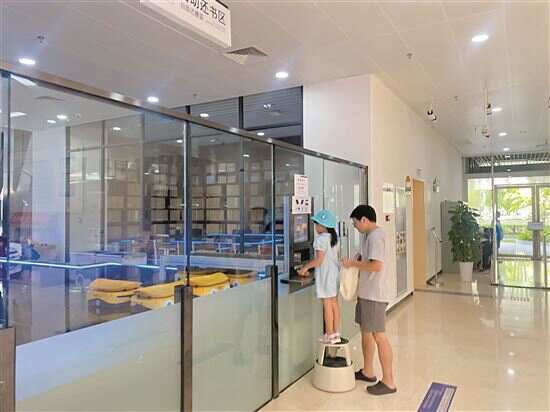在南沙区图书馆,馆内饮水处、母婴室和AED均有配备。家长告诉记者,借书时还能去图书消毒区用自助图书杀菌机进行图书消毒,再去打包角把书包装好带走,“这样的个性化服务,操作起来方便卫生又贴心。”王女士说。
