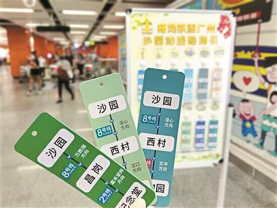 ■沙园站的“可取走式”换乘指引牌。 通讯员 雷卓雅/摄