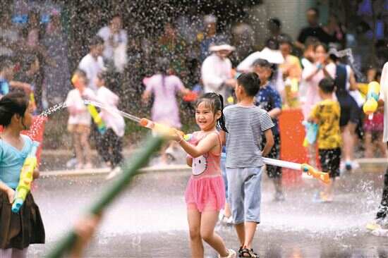 ■7月23日,人们在贵州省黔东南苗族侗族自治州施秉县泼水狂欢。当日是大暑节气,人们以各种方式亲水消暑。新华社发