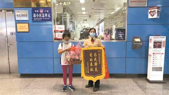 ■受救助乘客家属向昌岗站送锦旗。 通讯员 廖乾林/摄