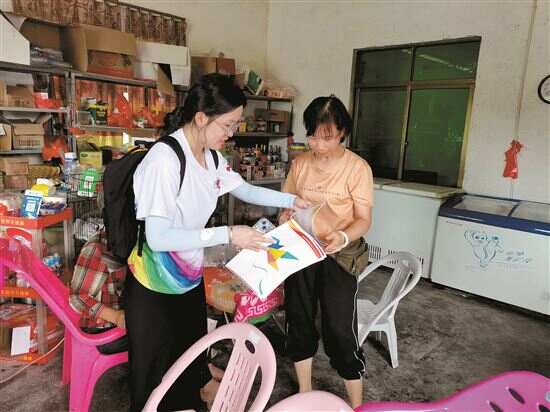 “三下乡”期间,“砺行筑梦团”团队成员通过深入当地镇村街道设立资助政策咨询点和经济困难家庭、发放宣传单并结合线上直播等多种形式,为村民讲解广东省各学段资助政策以及广东财贸职业学院资助政策。
