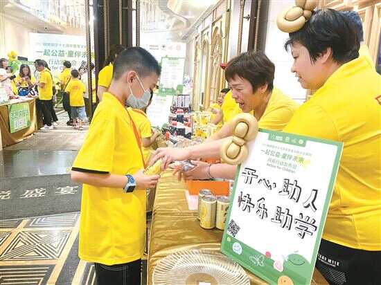 7月16日下午,广东公益恤孤助学促进会(下称“恤孤助学会”)“蝴蝶助学”的成人志愿者带着“蝶二代”——长期跟着父母开展黔粤山区学校援建义卖筹款的小志愿者,启动义拍义卖行动。