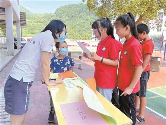 7月22日,经过高铁、大巴一路跋涉,梁宸浩和参与满天星阅读公益“月捐”的家庭到达了云南大理州的水泄乡文库小学图书馆。在互动中,城市家庭与乡村的同学们分享读书心得,为他们朗读读本内容,还举办游园会活动。“宸浩将会在学校的游园会上执行一些‘小任务’。他年纪最小,团队安排他担任游园会柜台咨询员,帮忙讲解游戏规则、发放礼品等。任务不多,但他很期待。”梁海光笑着说。