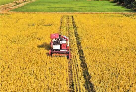 ■7月24日,大暑刚过,广州黄埔大吉沙岛开始早稻收割,全程使用自动运行的收割机和转运机,即使是烈日之下也能轻松收割稻谷。新快报记者 李小萌/摄