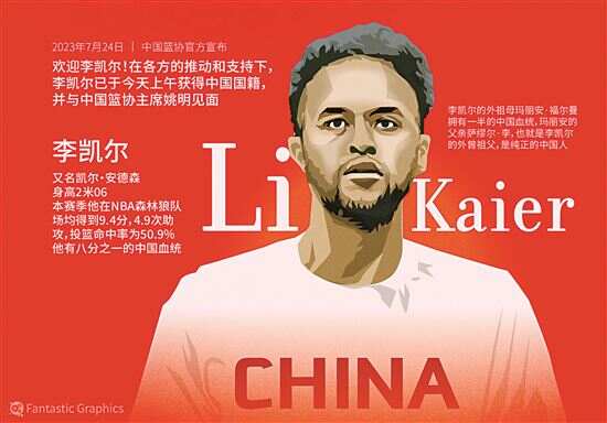 在个人社交媒体上,绰号“大锤”的李凯尔晒出身穿5号中国男篮球衣的照片,并配文:“是时候了,让我们加油!”至此,拥有1/8中国血统的凯尔·安德森(中文名为李凯尔)正式获得中国国籍,这也意味着中国男篮迎来了首位归化球员。