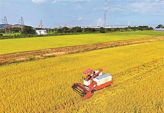 新快报讯 记者李应华报道 大暑刚过,广州艳阳高照,下午时分是最炎热的时候,而黄埔大吉沙岛上却开始了早稻收割。从远处看,收割机在田间来回,每每装满机上的粮仓,就会回到田边将稻谷转移到一旁等候的转运车上,再由转运车运到机耕路上的货车上……