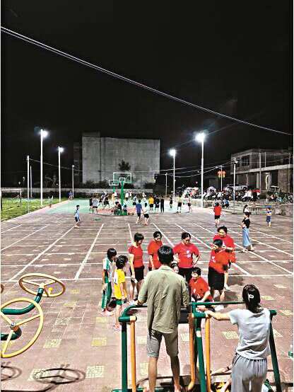 新快报讯 记者方轶 通讯员覃相貌报道 8个高高的灯柱矗立,20盏灯明亮又柔和,整个运动场亮如白昼,村民有的在健身,有的在跳广场舞,有的在篮球场上打球,有的在足球场上驰骋,有的在悠闲漫步,热闹非凡。日前,在广州市番禺区驻梅州市五华县梅林镇帮镇扶村工作队(下称“工作队”)推动下,梅东村运动场改造提升工程完工,成为当地群众休闲娱乐和锻炼的好去处。