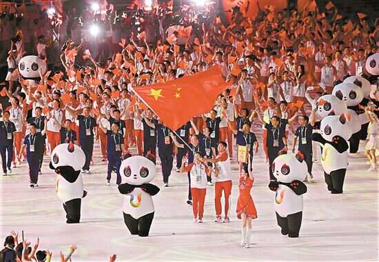 ■7月28日,第31届世界大学生夏季运动会开幕式在成都东安湖体育公园主体育场举行,中国大学生体育代表团入场。新华社发
