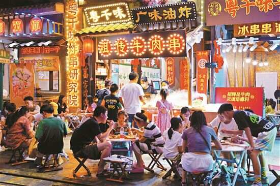 ■位于时尚天河寻马街,饭点到了,游客其乐融融享受美食。