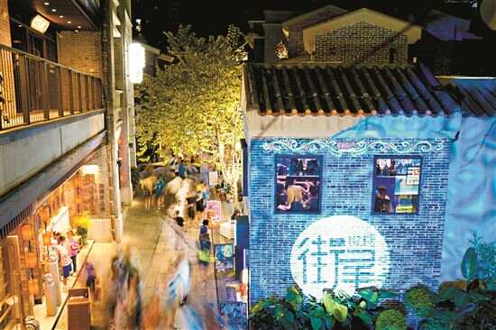 ■在夜晚的广州市永庆坊,古老的艺术与现代的氛围完美结合,游客们在人流涌动中穿梭而过。