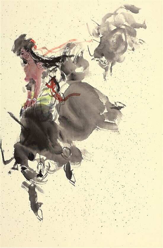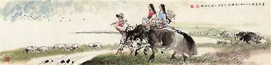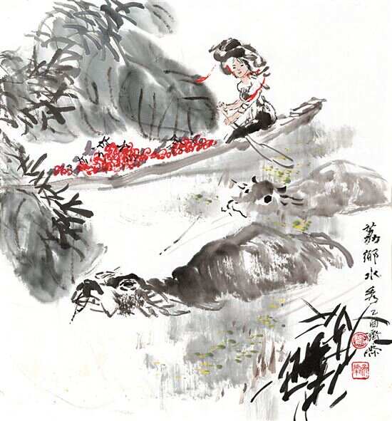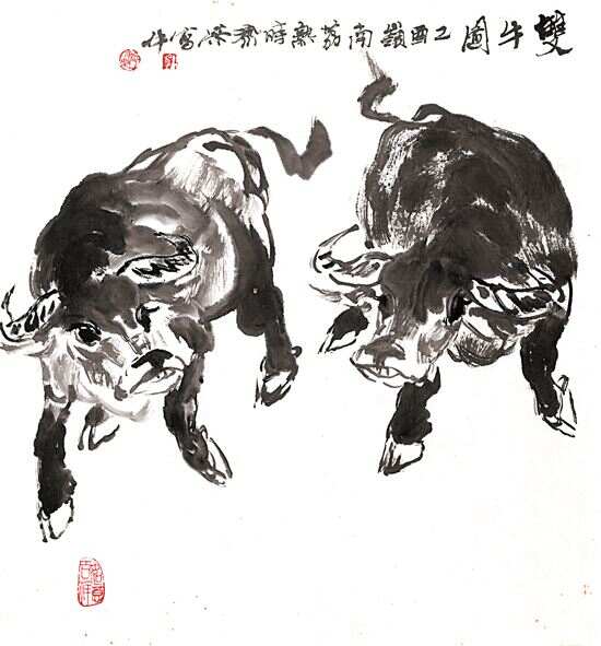 他笔下的牛来源于生活,但又不完全同于生活,在他水墨淋漓的作品画面中,那些牛“有骨有肉有血”,他将朴实无华的牛人格化,而且将牛当成一种精神的象征,并将自己默默当成一头画坛的牛。所以,他经常强调要有牛那种韧劲,而更重要的是那种奉献和献身精神。虽然吃的是草,但挤出来的是牛奶。对群众、对社会、对民族都有贡献。
