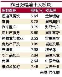 昨日盘面上,地产链掀涨停潮,华远地产、中南建设、荣盛发展等多股涨停;汽车整车全天领涨,众泰汽车、海马汽车双双涨停;农业股表现活跃,转基因板块走强,秋乐种业涨超12%,神农科技、荃银高科等跟涨;消费零售板块午后拉升,人人乐、中央商场双双涨停。