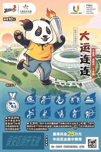 体彩通过顶呱刮带您领略成都这座城市和大运会魅力极具特色的蜀地元素,展示成都传承千年辉煌。全世界青年健儿因大运欢聚成都,青春与热血共燃,享受大运赛场,以体育之名,以成都之名和体彩顶呱刮一起为大运会喝彩,为运动健儿拼搏欢呼,一起见证光荣与梦想。