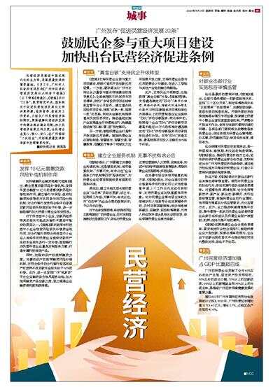 法治保障对民营经济发展来说,是一种固根本、稳预期、利长远的制度保障。《措施》提出,推动民营经济地方立法,坚决依法保护民营企业家合法权益,加快制定出台广州市民营经济促进条例,通过地方性法规为平等保护民营企业、打造公平营商环境提供制度保障。