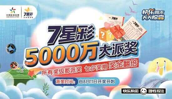 新快报讯 记者陆妍思 通讯员丰佳佳报道 又是一年盛夏八月,体彩7星彩携欢乐与幸运相约,派奖活动即将火热开启!所有奖级都派奖,还有七夕特别奖期与你甜蜜相约,单注一等奖最高可中1000万元,单张单期投注金额满10元即可参与。惊喜连连,8月8日21:10正式开售,你准备好了吗?