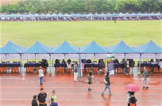 ■4月9日,由广东省人社厅、省教育厅联合主办的“职引未来 筑梦南粤——2023年高校毕业生春季招聘会”在华南理工大学操场举行。越来越多年轻人涌向新一线城市,广州需要吸引更多年轻人。 新快报记者 龚吉林/摄(资料图)
