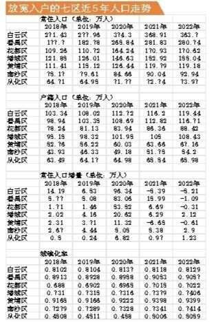 另一方面,上述7区的人口增量在近年则变化不一。除了部分区2020年因数据来自第七次全国人口普查,统计方式与日常的年度统计不一而产生增量较大以外,白云、黄埔两区常住人口连续两年下降,番禺的增量也从2021年的近16万人变成去年的减少1万人,花都去年数据也略有下降,合计4个区出现了常住人口下降的现象。