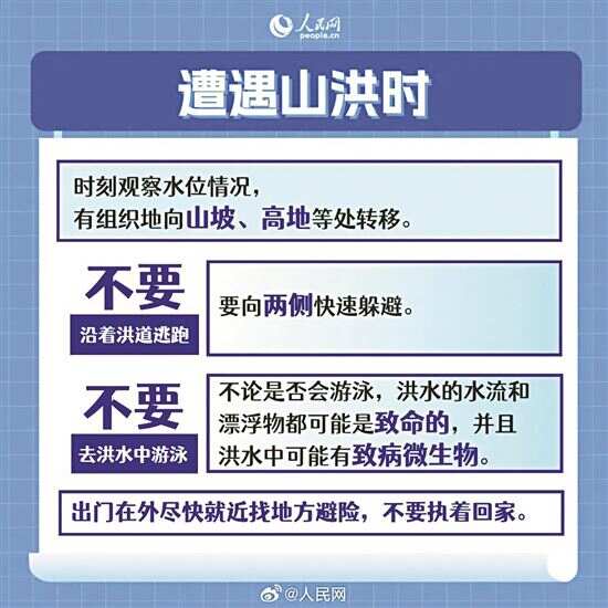 要选择正规景区游玩,不要在滩涂、河道、山脚、泄洪道等区域游览、野营和露宿。