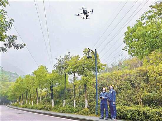 ■供电人员使用5G无人机对线路进行智能巡检。(徐靖琳/摄)