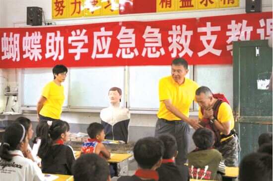 “山区孩子在日常生活中很需要这样的应急安全知识。”应急安全支教工作组负责人虞敏告诉记者,2022年9月,蝴蝶助学“应急安全支教”工作组带着自编《蝴蝶助学应急安全小宝典》,为贵州山区中小学教师和学生带去了应急安全演练与紧急急救知识支教课,让老师和学生能够“助人自助”,共同守护山区儿童的安全成长。